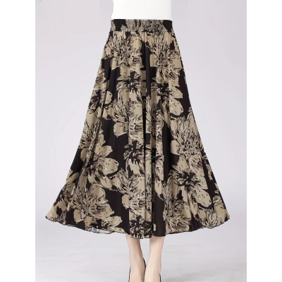 花柄ウエストゴムスカート、春夏カジュアルAラインスカート、婦人服